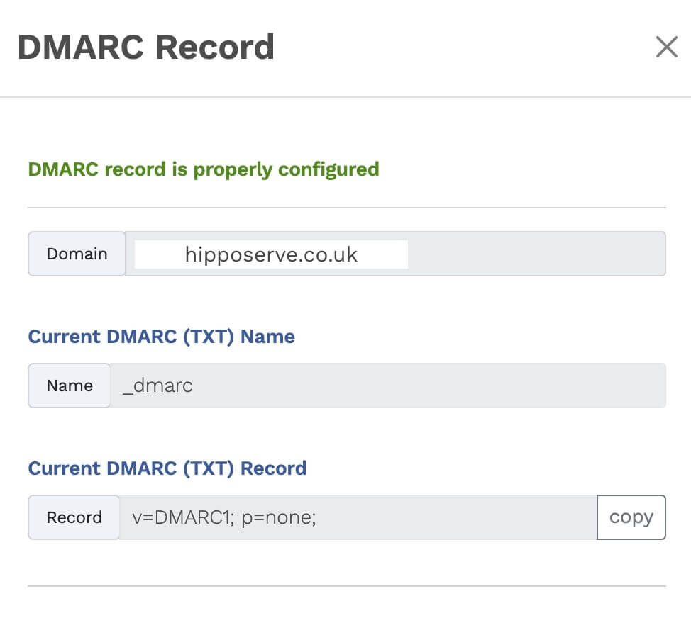 - Important: If you already have an DMARC record that is different, should remove it before adding this one.