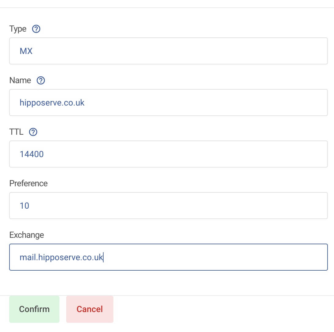 IMPORTANT: You should not use this method if you are using a web hosting from Hipposerve or an email with the same domain name.