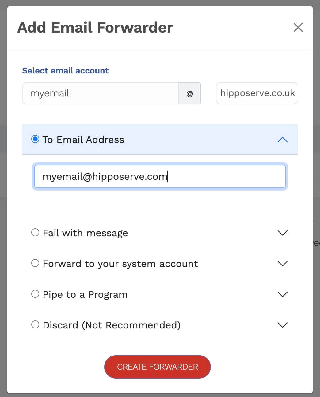 - Then add the email address to forward the messages to. This email does have to actually exist.