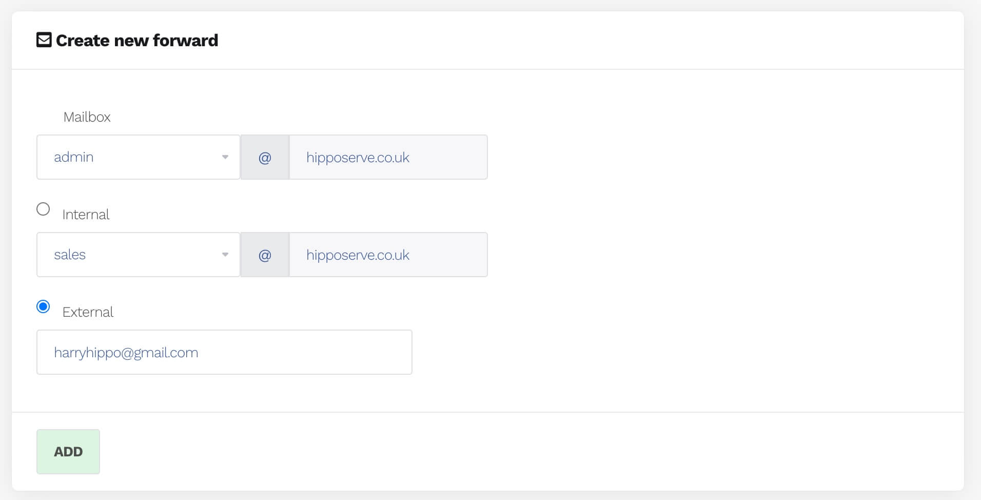 Setting up a Forward – Hipposerve Admin Account Holders