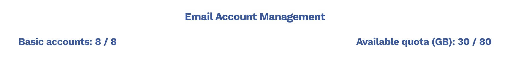 - Your account quota shows you how many mailboxes (accounts) you have used against the number purchased. It also shows how much quota you have available for your emails.