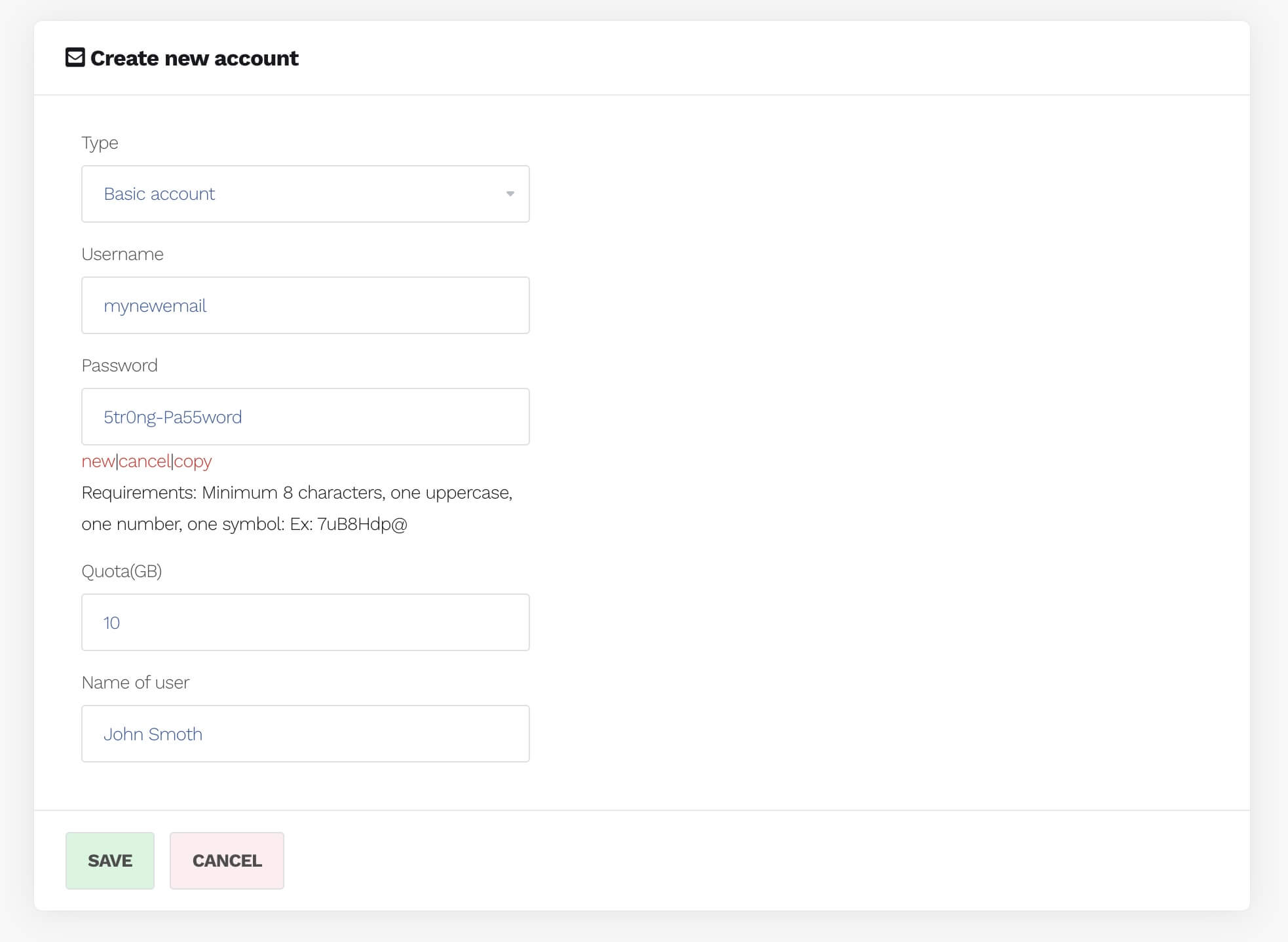 - Once created, you can access the email by using webmail, or by adding the account to an email client such as outlook or thunderbird.