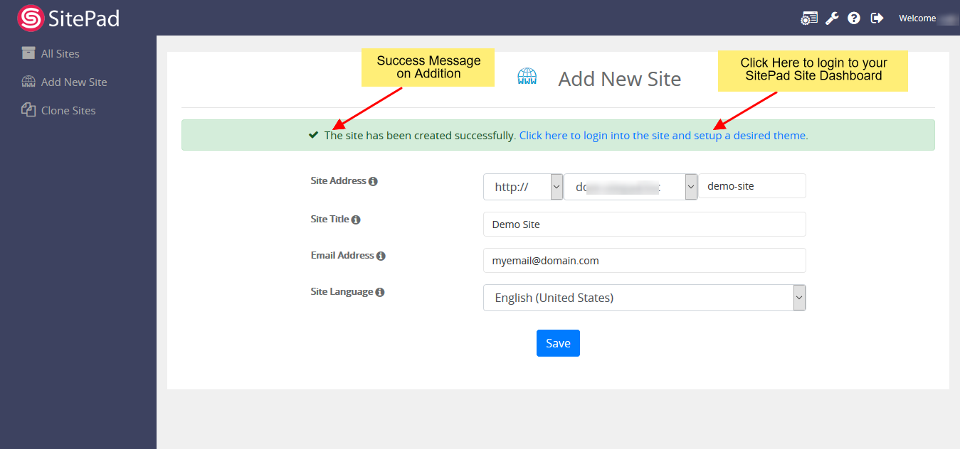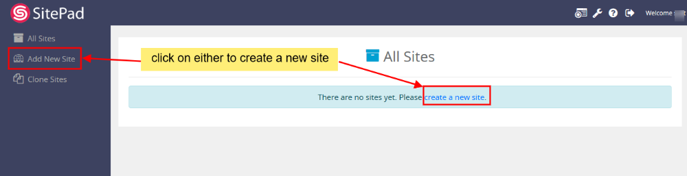 After reaching the SitePad Website Manager, you’ll need to create a new site.