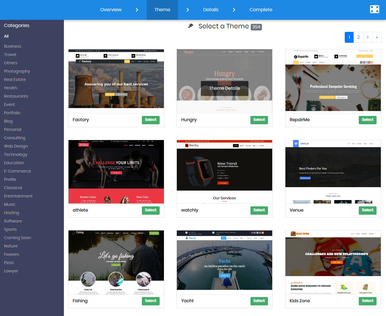 3. Once you find the perfect theme, click “Select” to apply it to your website.