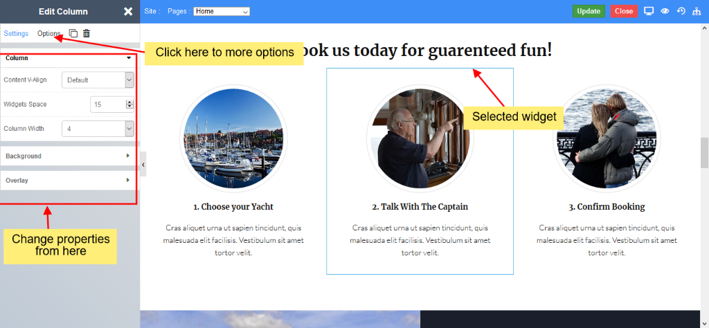 3. Click the Pencil Icon to modify widget properties (text, size, color, etc.).