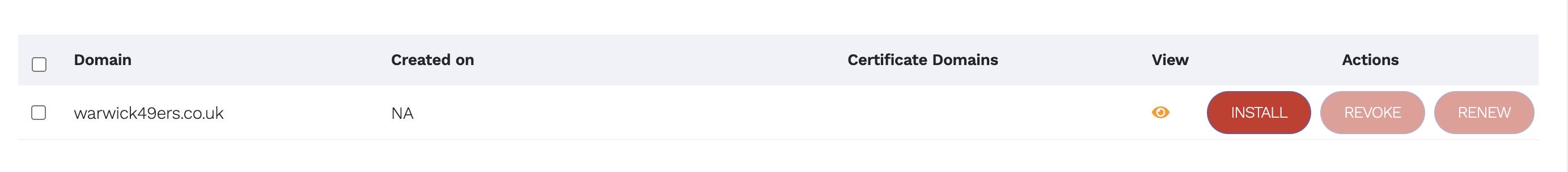 • Klikoni butonin Install për të kërkuar dhe instaluar certifikatën SSL.