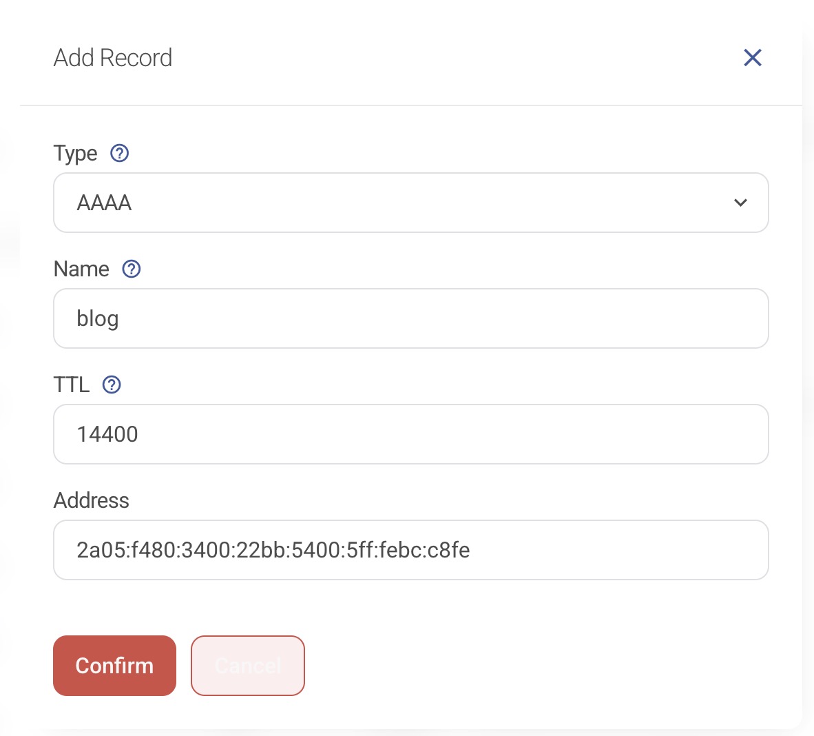 These records must match the IP addresses used by the existing A and AAAA records for the root domain. This tells DNS to route the subdomain through the same infrastructure.