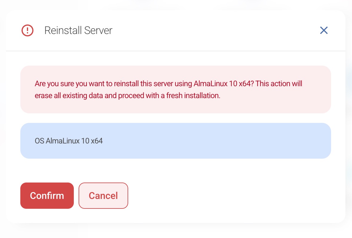 Important: Installing a new Operating System or Application will wipe all existing data on the server.