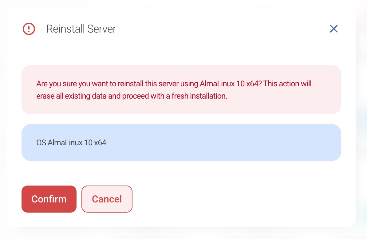 Hipposerve® accepts no responsibility for any data loss, service interruption, misconfiguration, or other issues arising from the installation or reinstallation of an operating system or application image. You must ensure that you have taken any required backups before proceeding.